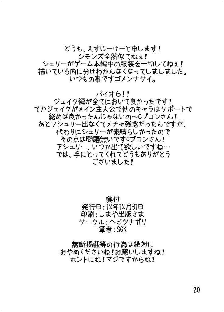 • 06.30 21:30 アシュリーの本です バイオハザードシリーズ